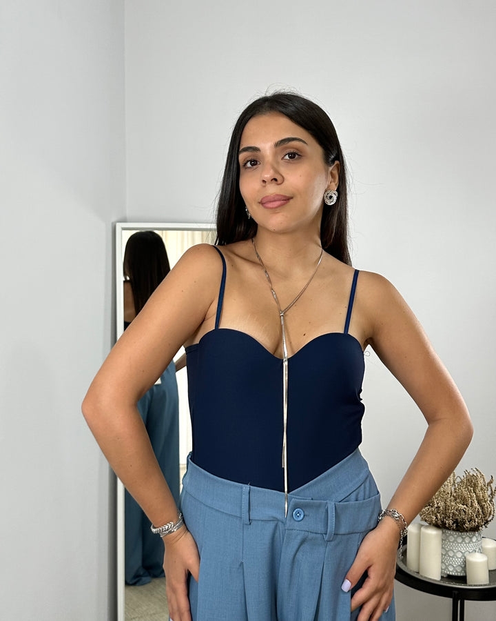 Realizzato in un tessuto liscio ed elasticizzato che offre una vestibilità impeccabile e confortevole, questo body presenta una scollatura a cuore che modella il décolleté in modo delicato e femminile. Le spalline sottili e regolabili garantiscono una vestibilità perfetta e un supporto discreto.