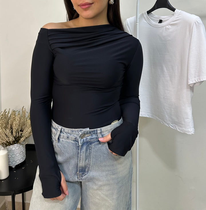 Body asimmetrico, manica a guanto.