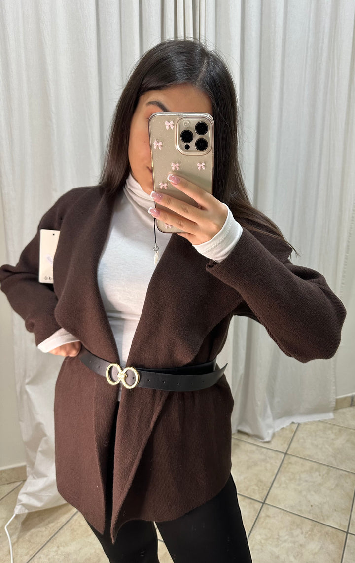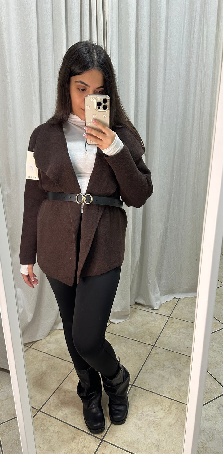 Cardigan in lana compreso di cintura, vestibilità regolare.