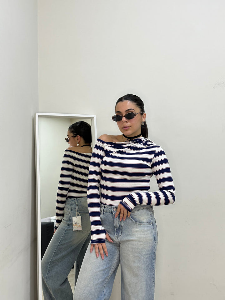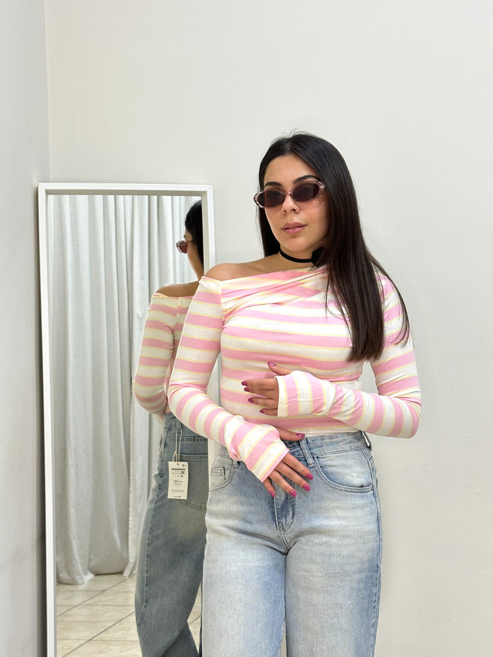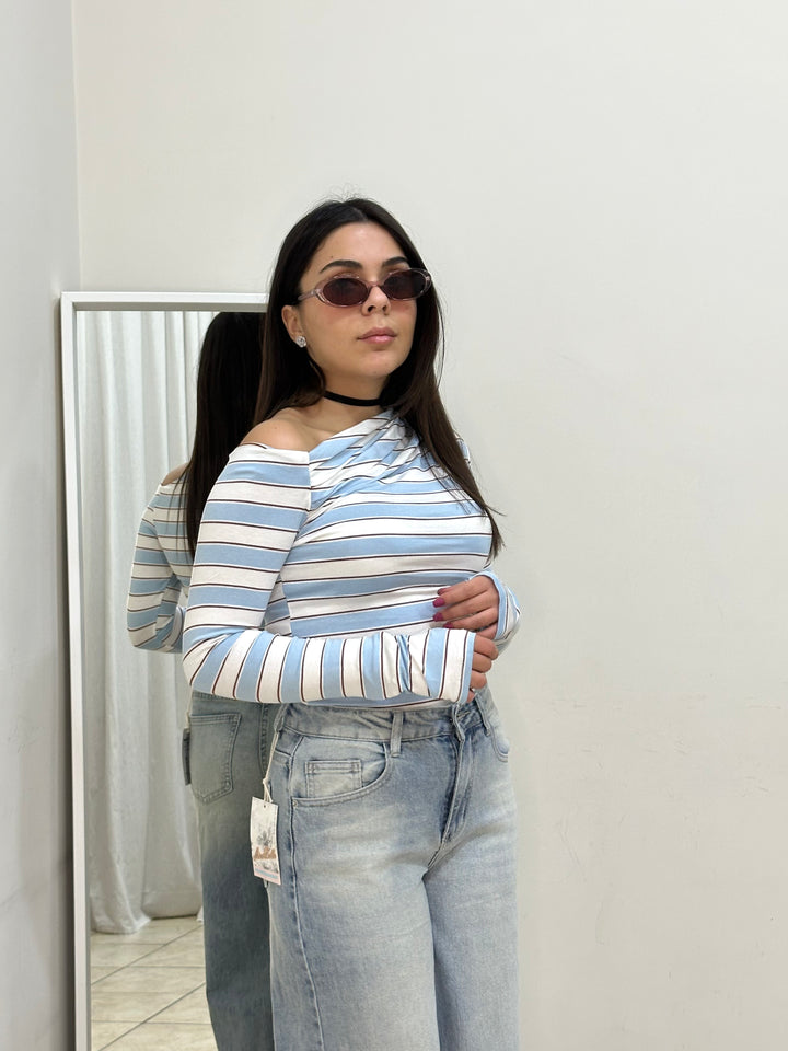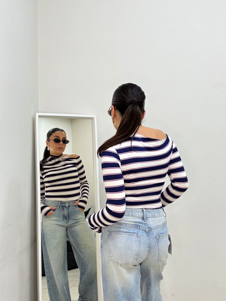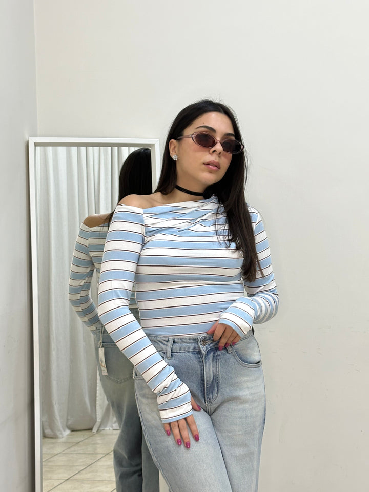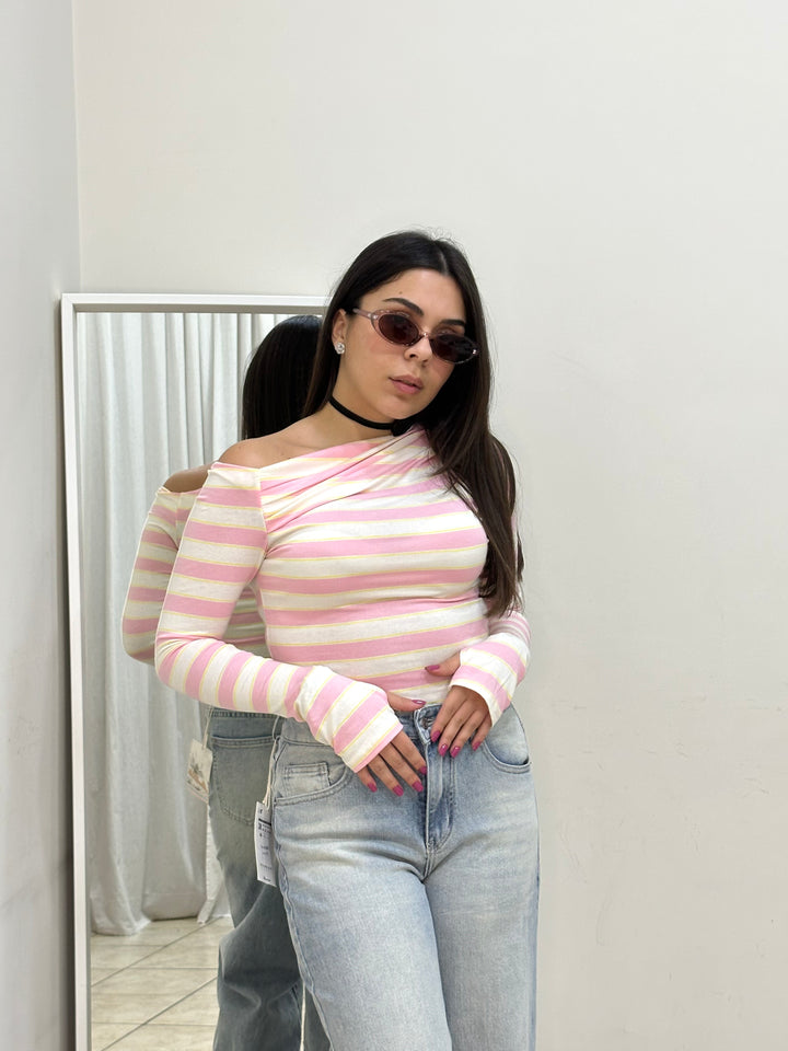 Maglia Kim con scollo asimmetrico e manica a guanto.
